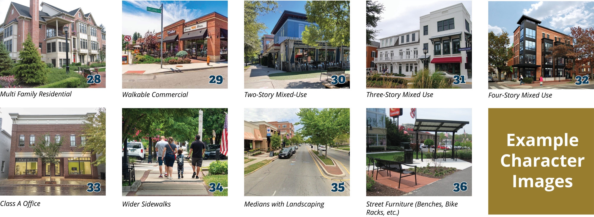 1. Support gradual redevelopment to bring buildings closer to the street, with parking behind, creating a more walkable, inviting, and well-connected streetscape.